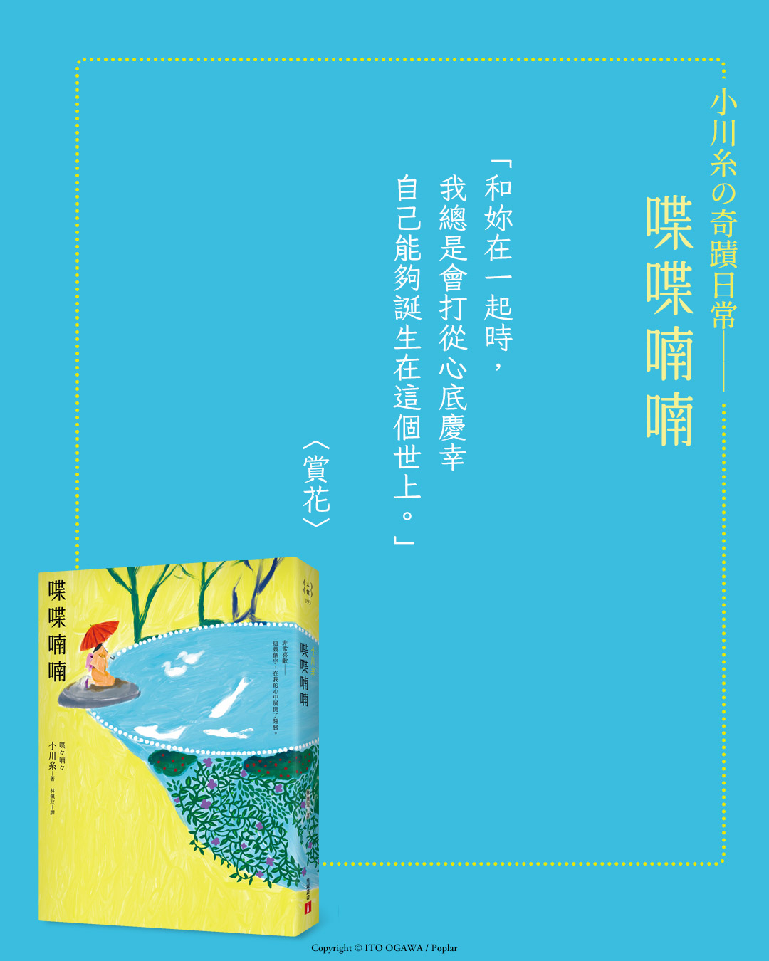 如同小川糸曾這樣形容自己:「作家有很多種,我的寫作方式比較像生活的延伸,因此,我的作品來自日常生活,必須用心度過每一天」,忽然能理解她在《喋喋喃喃》中寫出的那個開古董和服店的女主角,簡單古舊,沉迷禮儀,對慢節奏的堅守,因為她的真實生活便是如此。