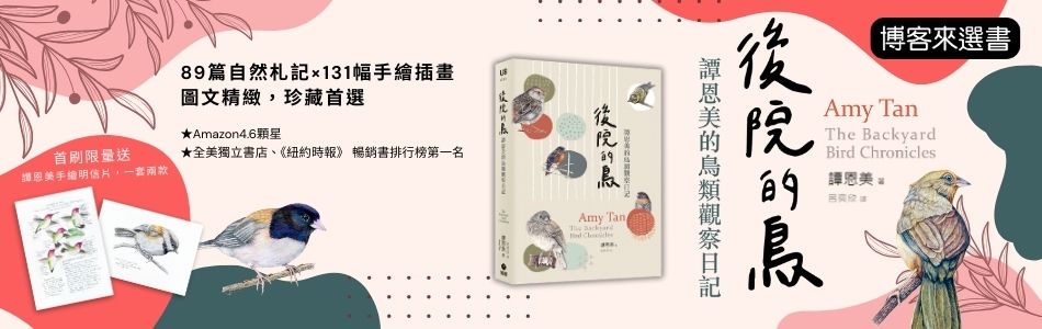 自2016年以來,譚恩美從只認識後院的3種鳥,到已經認得了63種鳥。而我一個完完全全的鳥類小白,也知道了雄性的朱紅蜂鳥都是不負責任的渣男;烏鴉媽媽需要照顧小屁鳥好多年,媽媽真可憐;地雀鵐行為逗趣,會挺著小肚子像個房東巡視,也會故意將餵食器的麵包蟲掃落地面,假裝是自己找到的……譚恩美以她細膩又獨特的觀察,賦予了後院的鳥不同的特色,讓這些鳥輕易地進入讀者心裡,以為自己也成為了一個入門的賞鳥人,雖然僅僅是紙上談兵,但發現自己能夠在另一個作家、另一本書的字句裡,將北美的鳥兒連結起來,著實令人驚喜。