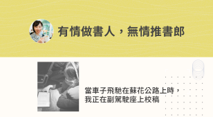 施彥如|有情做書人,無情推書郎 【施彥如專欄|有情做書人,無情推書郎】當車子飛馳在蘇花公路上時,我正在副駕駛座上校稿